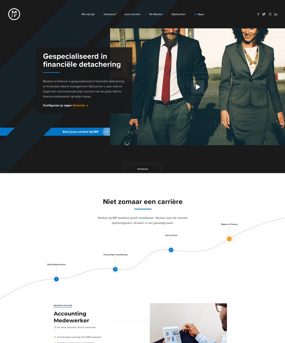 Een website vol storytelling en functionele animaties. Masters in Finance begeleidt financiële experts en detacheert ze naar organisaties voor tijdelijke ondersteuning.